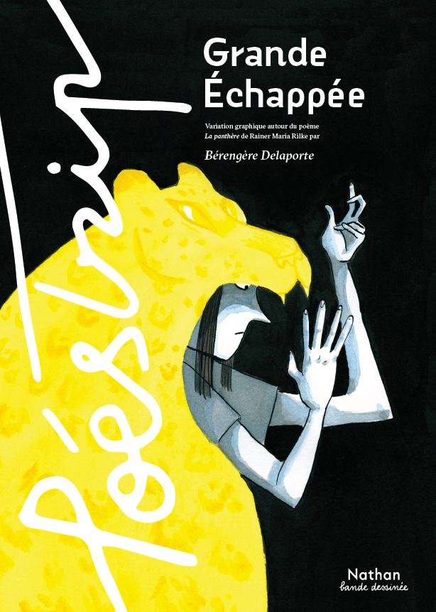 Septembre 2023 – Une merveille absolue disponible le 7 septembre 2023 : Grande Échappée, variation graphique autour du poème La Panthère, de R.M. Rilke, par Bérengère Delaporte, d’après la traduction de Claude Vigée, collection « Poéstrip« .