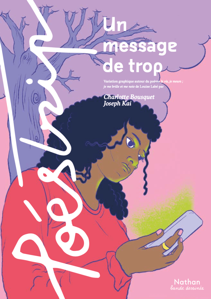 Mars 2024 – En librairie depuis le 7 mars, une variation graphique très contemporaine et colorée du poème Je vis, je meurs, je me brûle et me noie, de Louise Labé, est proposée par Charlotte Bousquet et Joseph Kai, avec pour titre Un Message de trop.